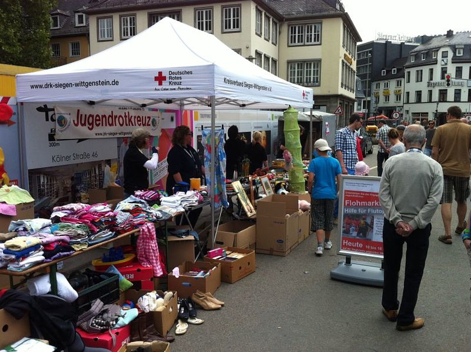 Innerhalb kürzester Zeit wurden Spielzeuge, Stofftiere, Bettwäsche, Schuhe und Kleidung in den Orts- und Frauenvereinen des DRK gesammelt, um sie dann auf dem Flohmarkt in der Siegener Innenstadt zu verkaufen. Allein der Ortsverein Irmgarteichen hatte für den Flohmarkt einen ganzen Anhänger voll Spielzeug und Kleidung gespendet.