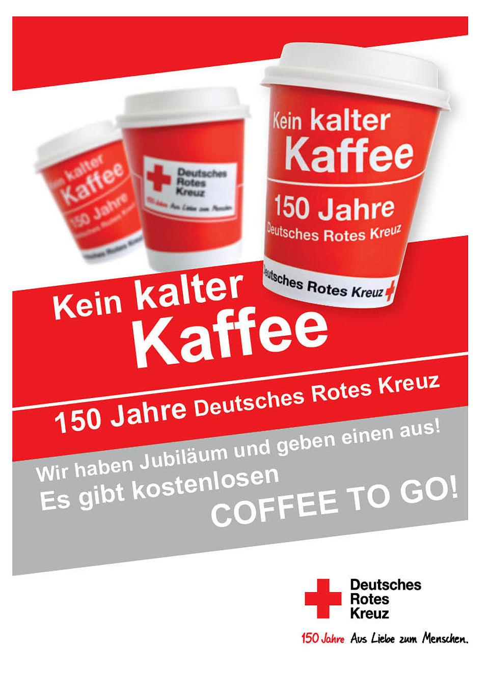 Unter dem Motto „Kein kalter Kaffee – 150 Jahre Rotes Kreuz“ heißt es am 8. Mai auch in Siegen-Wittgenstein „Wir haben Jubiläum und geben einen aus!“. Ehrenamtliche und hauptamtliche Rotkreuzler aus vielen DRK-Orts- und Frauenvereinen sowie dem DRK-Kreisverband Siegen-Wittgenstein werden auf die Straße gehen, um einen kostenlosen „Kaffee für unterwegs” zu überreichen, umso auf die Idee und die Aufgaben des Roten Kreuzes in Nordrhein-Westfalen aufmerksam zu machen.