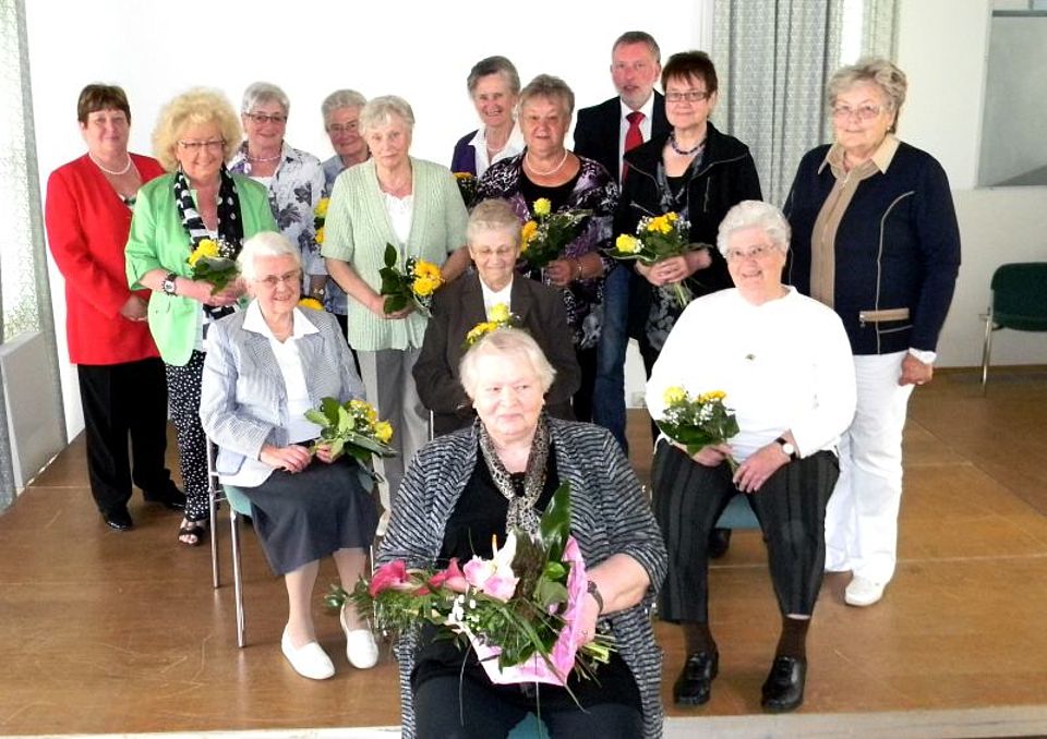 40 Jahre im DRK sind Jutta Bieler, Waltraud Braß, Elfriede Enners, Anneliese Euteneuer und Ingrid Waldrich. 50 Jahre Mitglied sind Edda Aurand, Else Dick, Gerda Ebener, Brigitte Göldner, Ingeborg Heinrich, Erika Lautz, Hanni Müller, Dorothea Münker, Ruth Schneider, Christel Schorn, Hermi Uhr und Ruth Weber. Bereits seit 60 Jahren dem DRK treu verbunden sind Liesel Scholz und Irmgard Stolz, besondere Ehrungen erhielten zudem Karoline Roth für 65-jährige Mitgliedschaft und Elfriede Dielmann sogar für 70 Jahre.