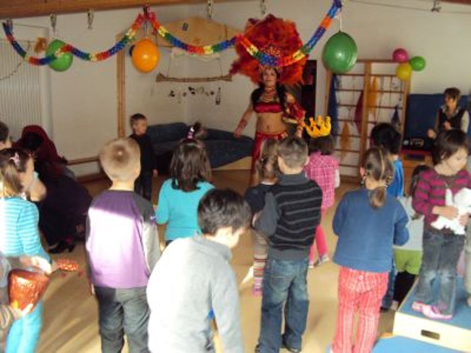 Als krönender Abschluss der musikalischen Reise um die Welt, wurde ein gemeinsames Musikfest gefeiert. Höhepunkte des Festes waren der Auftritt einer Kindergarten-Mutter Frau Langenbach aus Brasilien, die im landestypischen Kostüm „Samba“ tanzte. Der ehemalige Kindergartenvater Herr Ammendola verwöhnte die Zuhörer mit spanischen Klängen auf der Flamencogitarre und zwei türkische Mütter zeigten den Kindern einen traditionellen Hochzeitstanz. Alle großen und kleinen Tänzer machten begeistert mit. Nach einem klangvollen Vormittag gingen alle Kinder fröhlich und etwas erschöpft nach Hause.