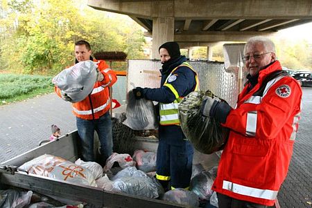 vl. Kreisrotkreuzleiter Joachim Steinbrück, Rotkreuzbeauftragter Berthold Siebel, Kreisrotkreuzleiterin Daniela Wißmann, Kreisgeschäftsführer Ralf Henze, Rotkreuzleiter Christian Tröps sowie Abteilungsleiter und Kleidersammlungseinsatzleiter Bernd Günther rufen gemeinsam die Bevölkerung auf, dass DRK mit Kleider- und Schuhspenden zu unterstützen.