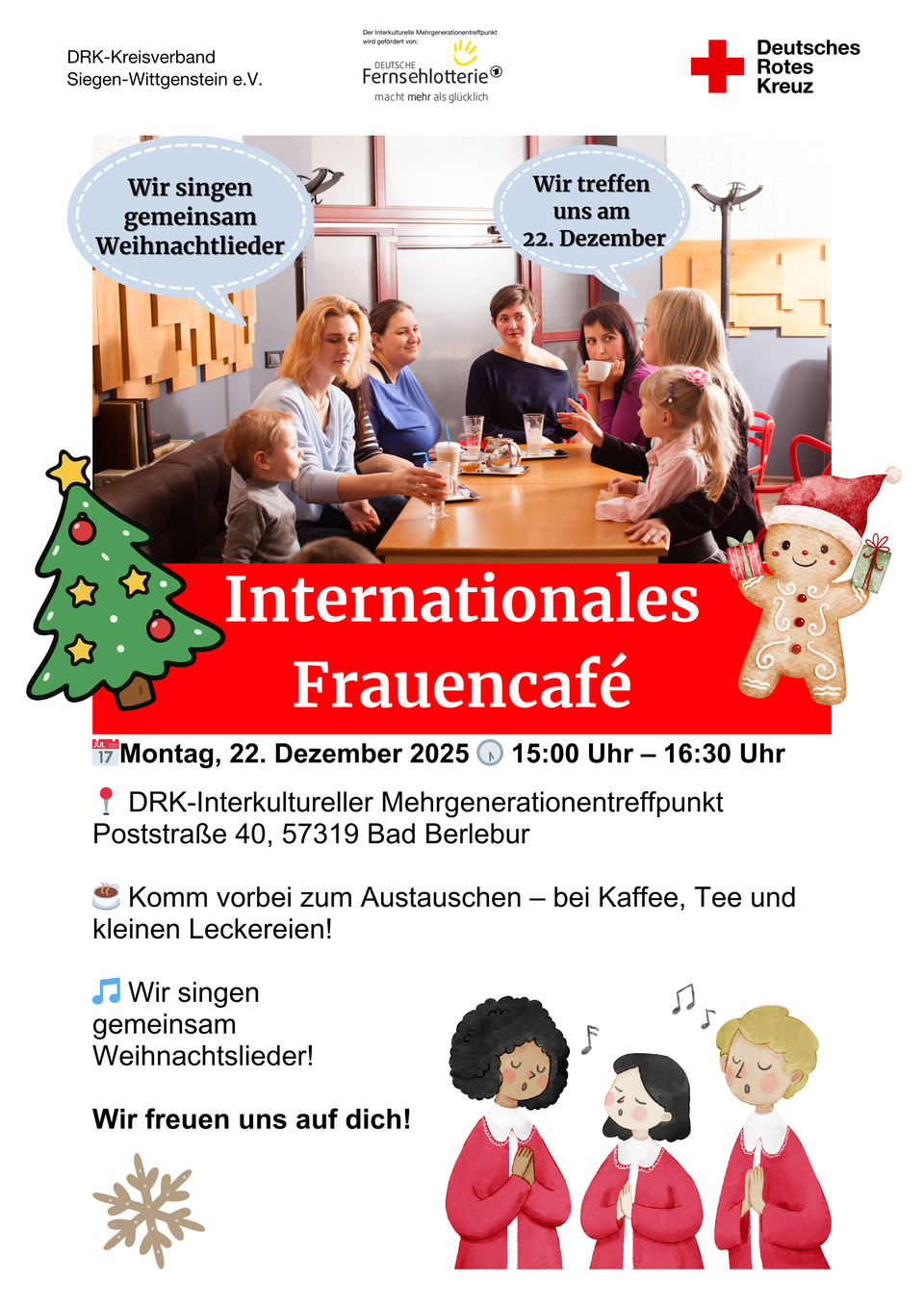 | Beratung für Geflüchtete | › Kostenloses Beratungsangebot vom DRK für Geflüchtete | Freitags 9:30 – 13:00 Uhr |